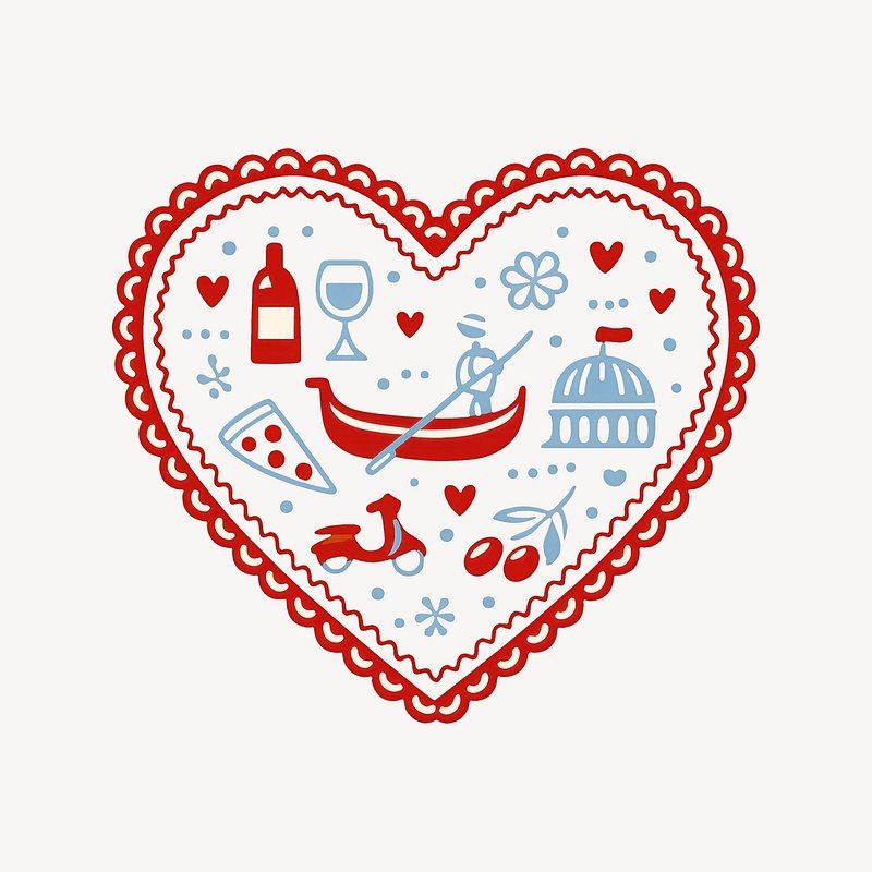 Romantic Italian-themed heart illustration. https://www.rawpixel.com/image/25227286/romantic-italian-themed-heart-illustrationView license