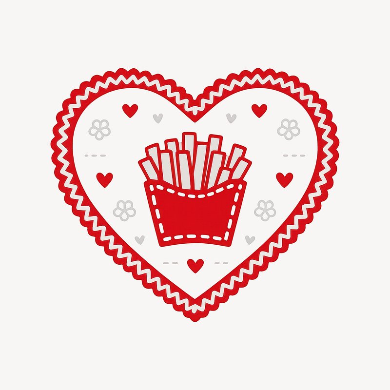 Heart fries love illustration https://www.rawpixel.com/image/25226268/heart-fries-love-illustrationView license