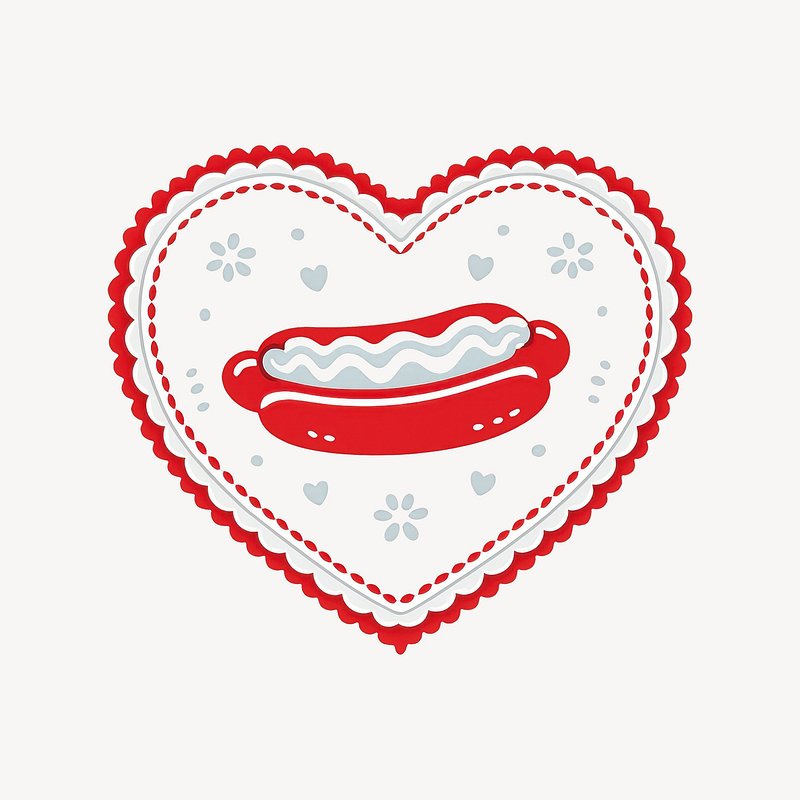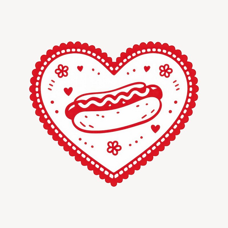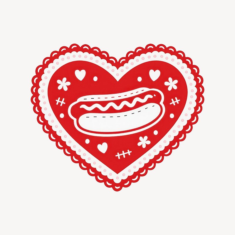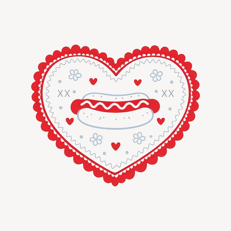 Heart-shaped hotdog love illustration. https://www.rawpixel.com/image/25225341/heart-shaped-hotdog-love-illustrationView license