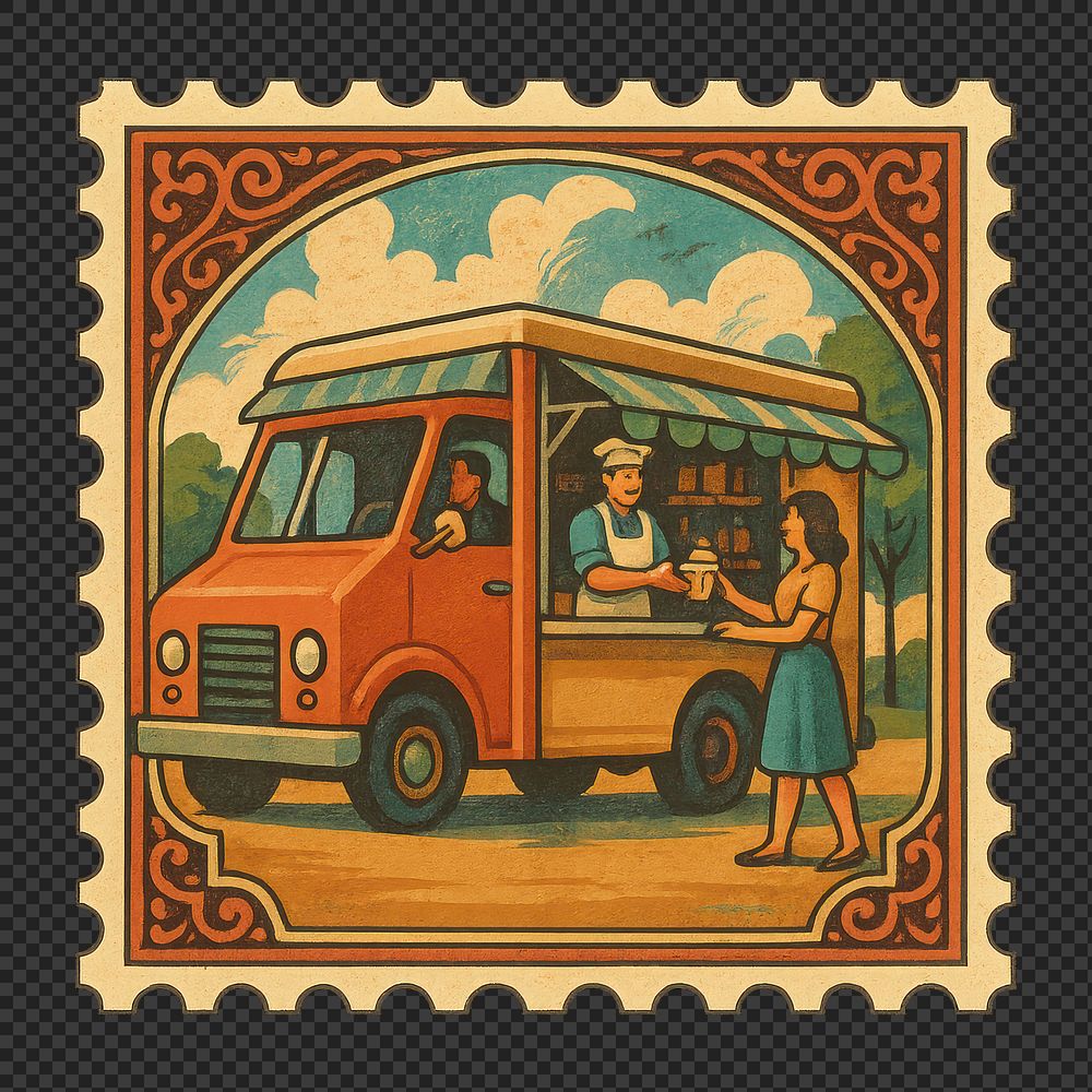 PNG Vintage food truck stamp illustration. https://www.rawpixel.com/image/18231380/png-vintage-food-truck-stamp-illustrationView license