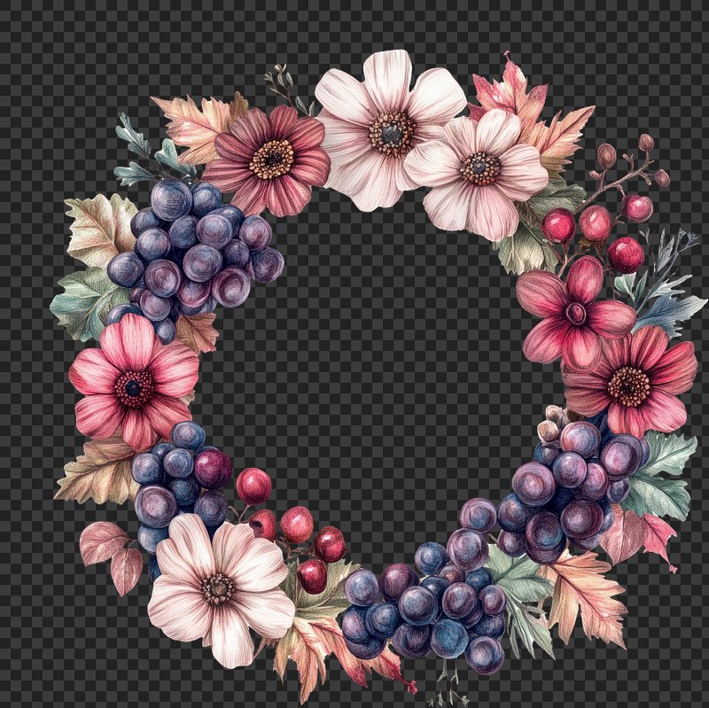 PNG Wreath fruits illustration composition. https://www.rawpixel.com/image/18423030/png-wreath-fruits-illustration-compositionView license