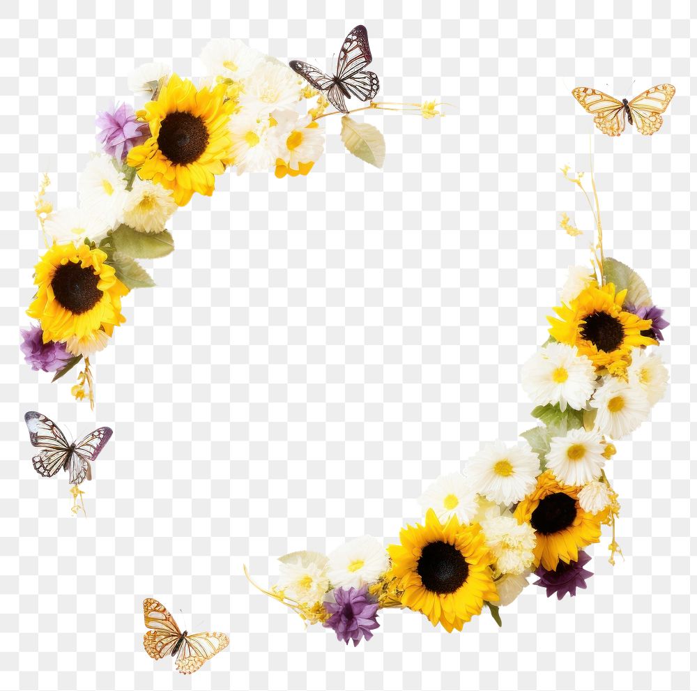 PNG Little butterfly circle border pattern flower wreath. https://www.rawpixel.com/image/13151242/png-white-background-butterflyView license