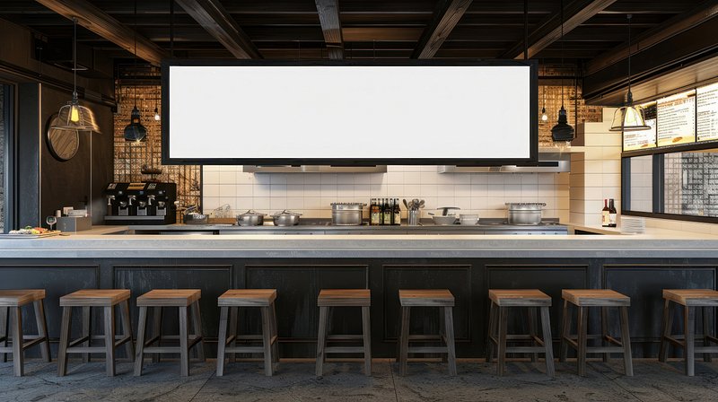 Modern restaurant kitchen display sign mockup png, transparent design https://www.rawpixel.com/image/25597749/modern-restaurant-kitchen-display-sign-mockup-png-transparent-designView license