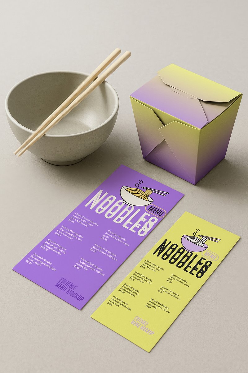Colorful noodle menu mockup psd https://www.rawpixel.com/image/25461922/colorful-noodle-menu-mockup-psdView license