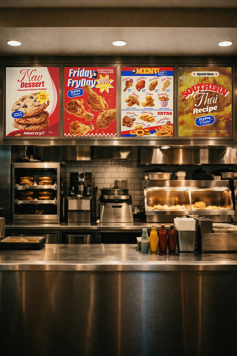 Fast food restaurant menu display mockup psd https://www.rawpixel.com/image/25597748/fast-food-restaurant-menu-display-mockup-psdView license