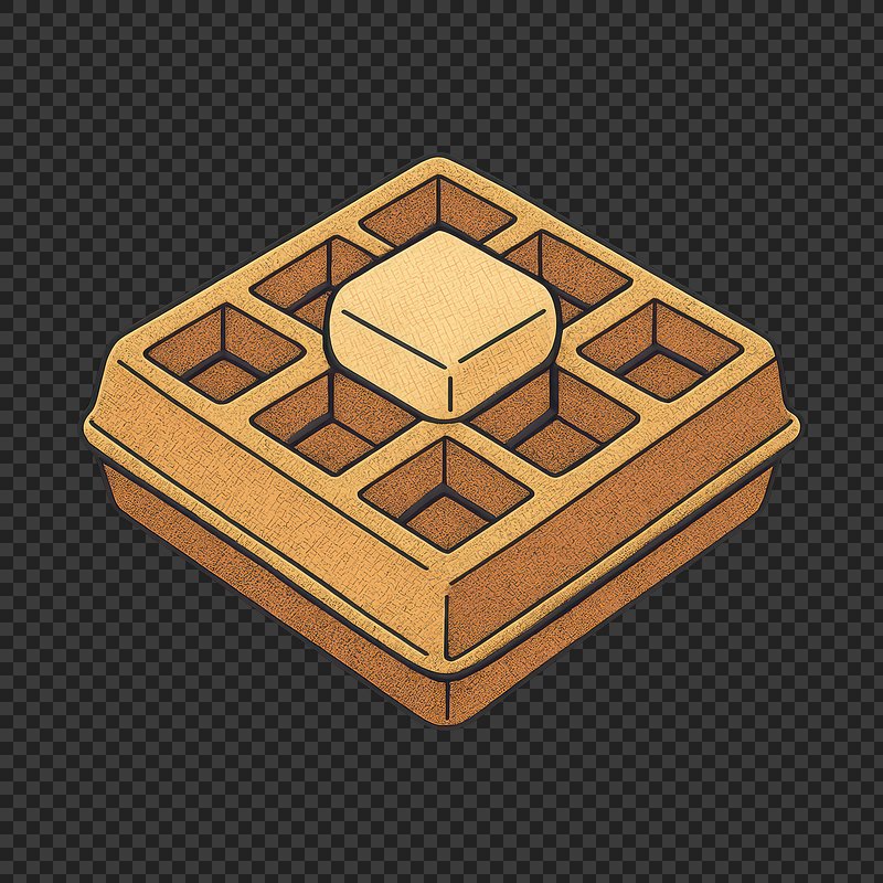 PNG Square waffle breakfast treat. https://www.rawpixel.com/image/24480745/png-square-waffle-breakfast-treatView license