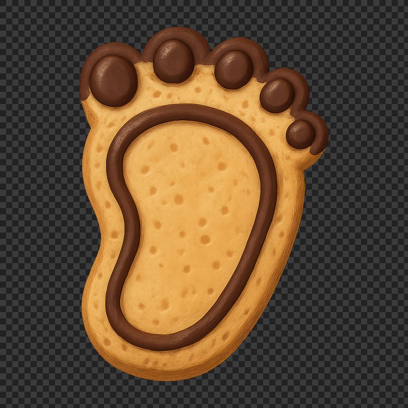 PNG Foot-shaped cookie with chocolate. https://www.rawpixel.com/image/24229765/png-foot-shaped-cookie-with-chocolateView license