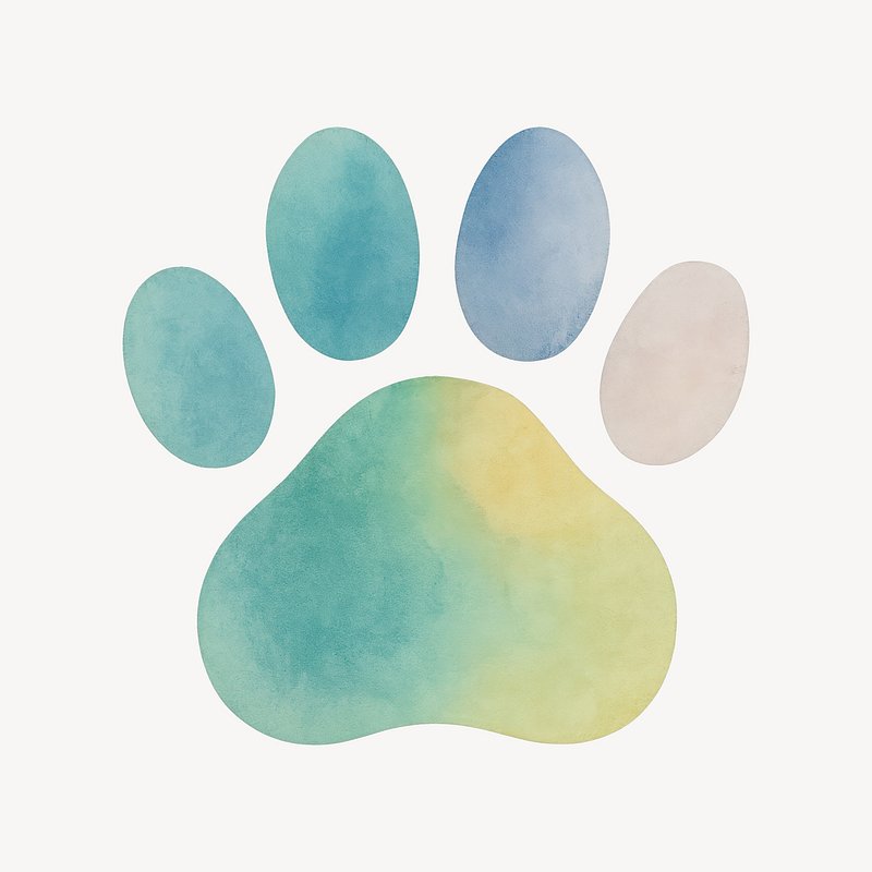 Colorful watercolor animal paw print https://www.rawpixel.com/image/24933118/colorful-watercolor-animal-paw-printView license
