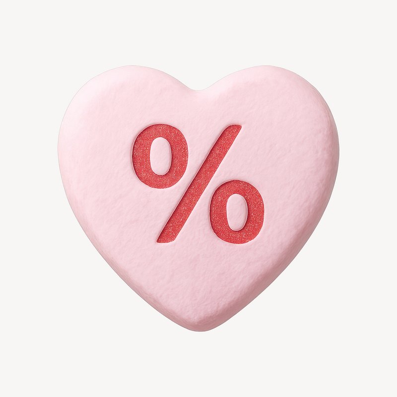 Heart-shaped symbol with percentage. https://www.rawpixel.com/image/24265204/heart-shaped-symbol-with-percentageView license