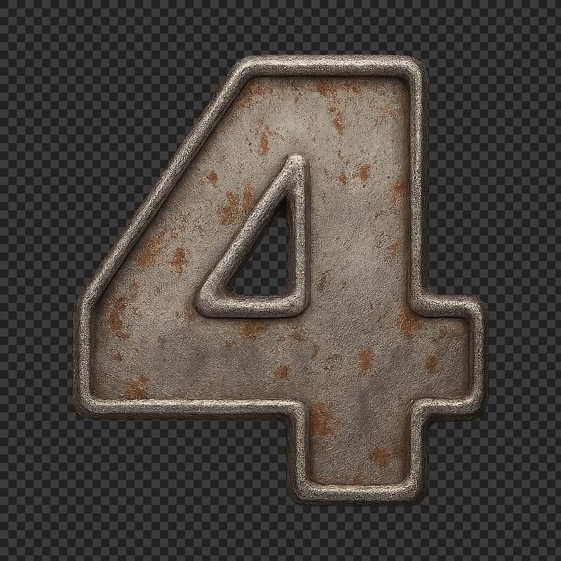 PNG Rustic metallic number four https://www.rawpixel.com/image/24464876/png-rustic-metallic-number-fourView license