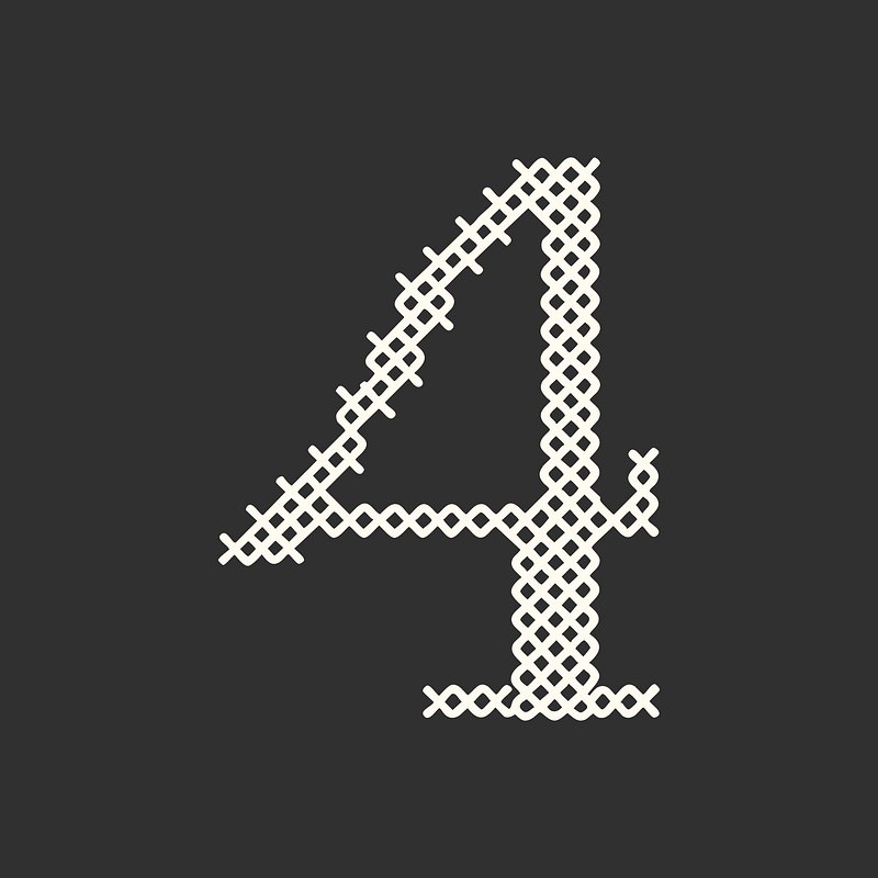 PNG Cross-stitch number four illustration. https://www.rawpixel.com/image/24303190/png-cross-stitch-number-four-illustrationView license