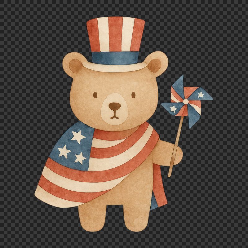 PNG Patriotic bear with pinwheel https://www.rawpixel.com/image/17876902/png-patriotic-bear-with-pinwheelView license