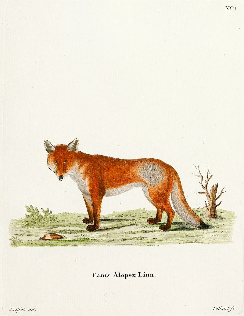 Red fox from Die Säugthiere in Abbildungen nach der Natur (1778-1855) by Georg August Goldfuss, Johann Andreas Wagener and… https://www.rawpixel.com/image/16930539/image-animal-fox-artFree Image from public domain license