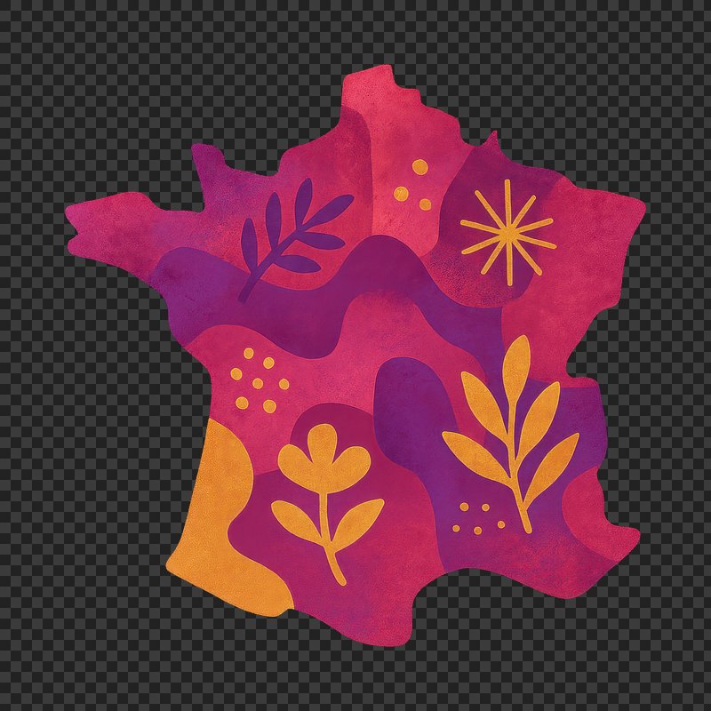 PNG Floral map of France https://www.rawpixel.com/image/24392891/png-floral-map-franceView license