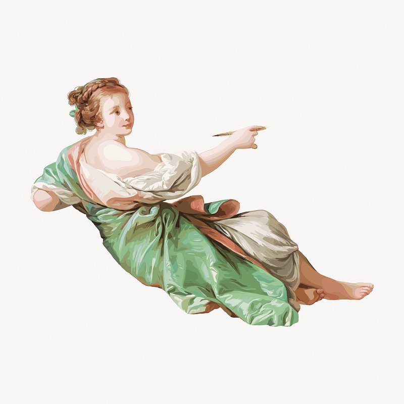 François Boucher's Allegory of Painting vintage illustration isolated on white, vector. Remixed by rawpixel. https://www.rawpixel.com/image/16915979/vector-angel-person-artView license
