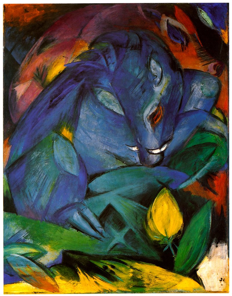 Franz Marc painting, vintage two cats, blue and yellow, expressionism art print https://www.rawpixel.com/image/3905083/illustration-image-watercolor-abstract-artView license