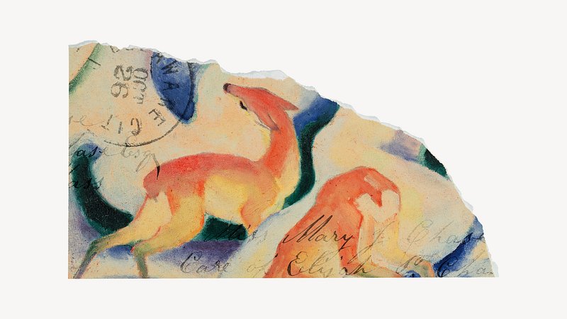 Franz Marc 's Red Deer II (1912) famous painting. Original from Wikimedia Commons . Digitally enhanced by rawpixel. https://www.rawpixel.com/image/3984401/illustration-image-art-vintageFree Image from public domain license