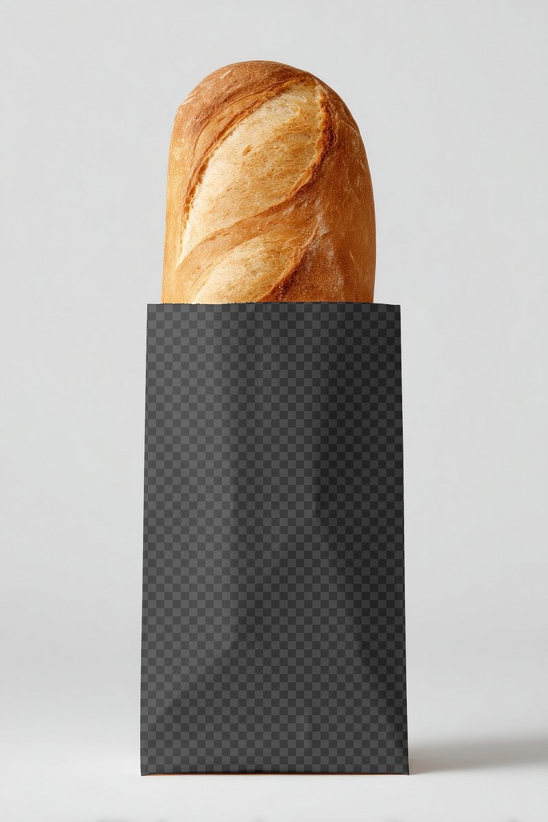 Bread in paper bag mockup png, transparent design https://www.rawpixel.com/image/23023160/bread-paper-bag-mockup-png-transparent-designView license