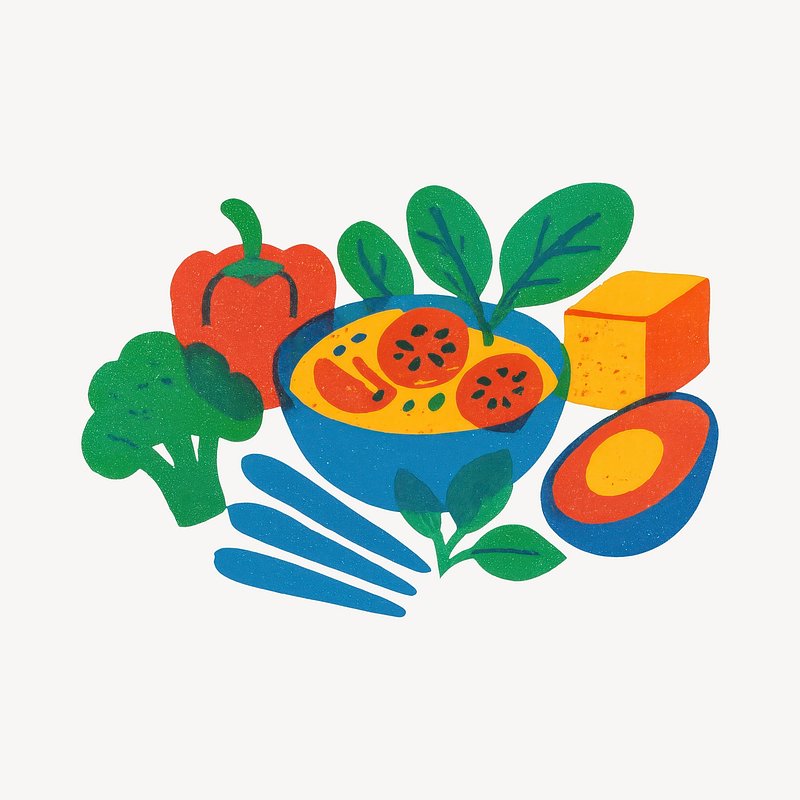 Colorful healthy food illustration https://www.rawpixel.com/image/22325637/colorful-healthy-food-illustrationView license