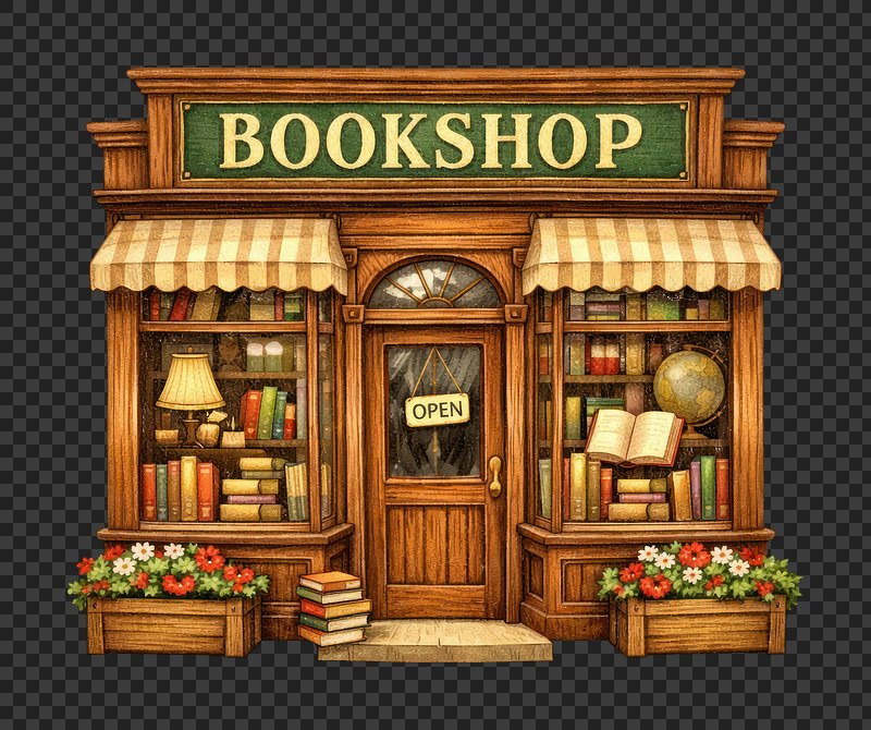 PNG Charming vintage bookshop illustration. https://www.rawpixel.com/image/25864950/png-charming-vintage-bookshop-illustrationView license