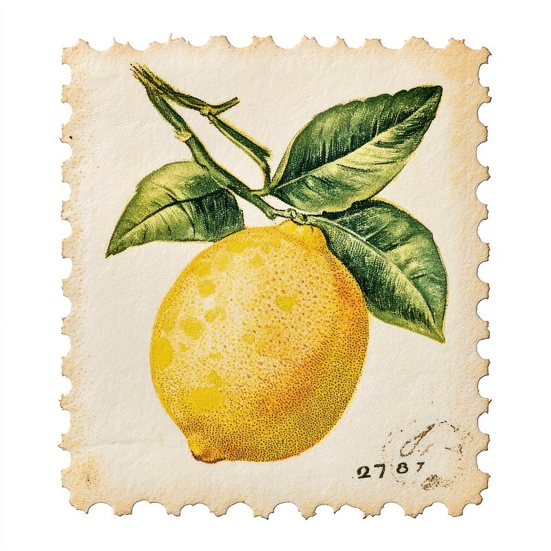 Lemon postage stamp vintage fruit illustration. https://www.rawpixel.com/image/16789443/lemon-postage-stamp-vintage-fruit-illustrationView license