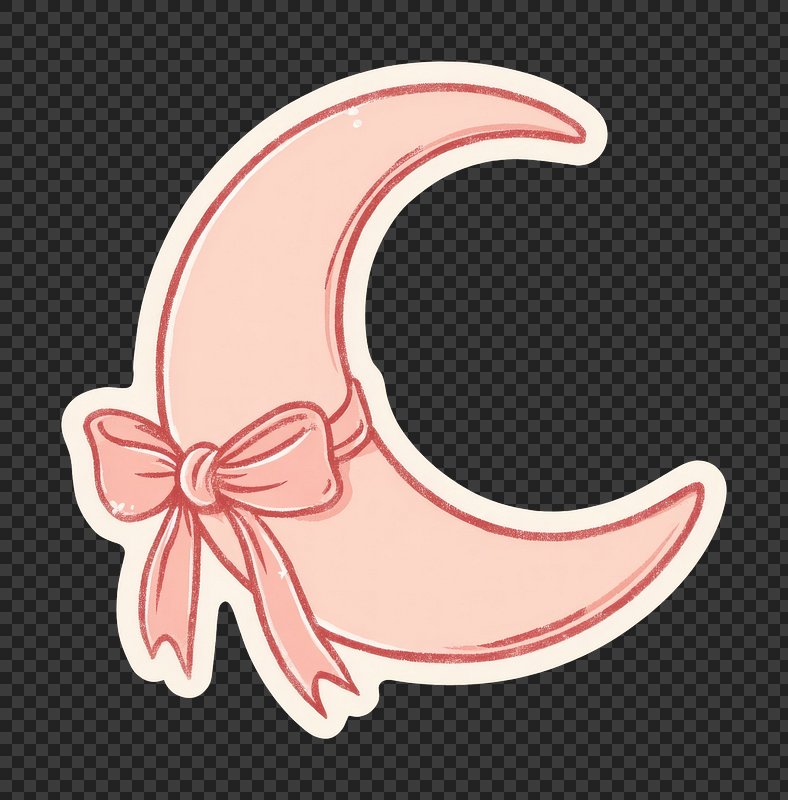 PNG Pink crescent moon with bow. https://www.rawpixel.com/image/25246168/png-pink-crescent-moon-with-bowView license