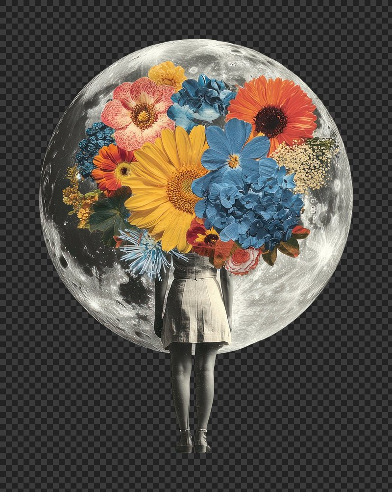 PNG Surreal floral moon collage art. https://www.rawpixel.com/image/25630924/png-surreal-floral-moon-collage-artView license