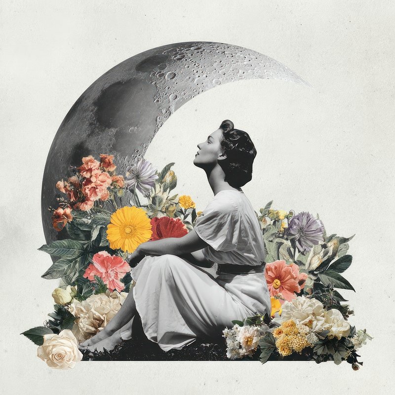 Vintage floral moon collage https://www.rawpixel.com/image/25585875/vintage-floral-moon-collageView license