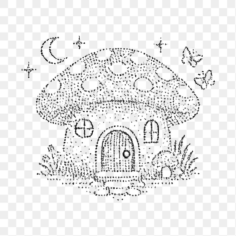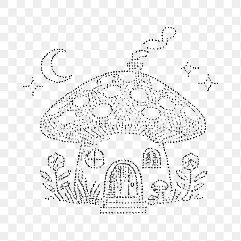 PNG Whimsical dotted mushroom house illustration. https://www.rawpixel.com/image/25235858/png-whimsical-dotted-mushroom-house-illustrationView license