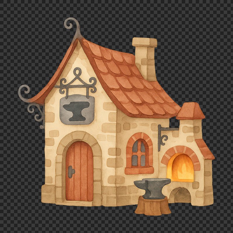 PNG Charming medieval blacksmith workshop illustration. https://www.rawpixel.com/image/19143407/png-charming-medieval-blacksmith-workshop-illustrationView license