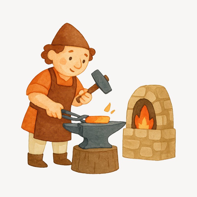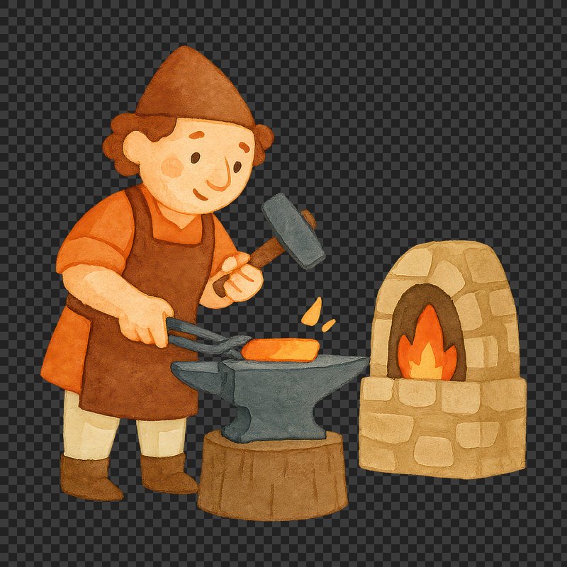 Charming medieval blacksmith illustration. https://www.rawpixel.com/image/20652898/charming-medieval-blacksmith-illustrationView license