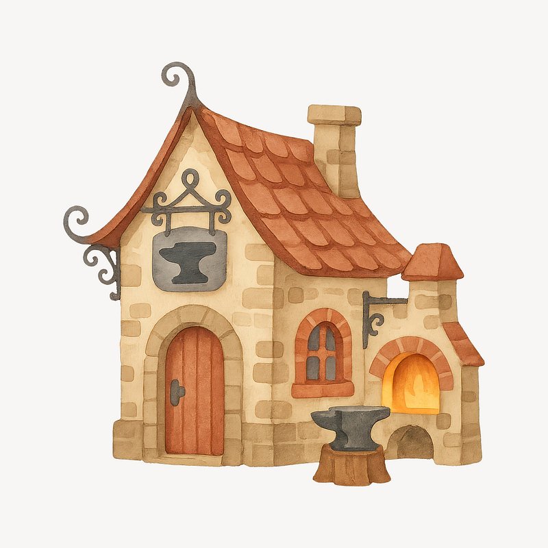 Charming medieval blacksmith workshop illustration. https://www.rawpixel.com/image/20995525/charming-medieval-blacksmith-workshop-illustrationView license