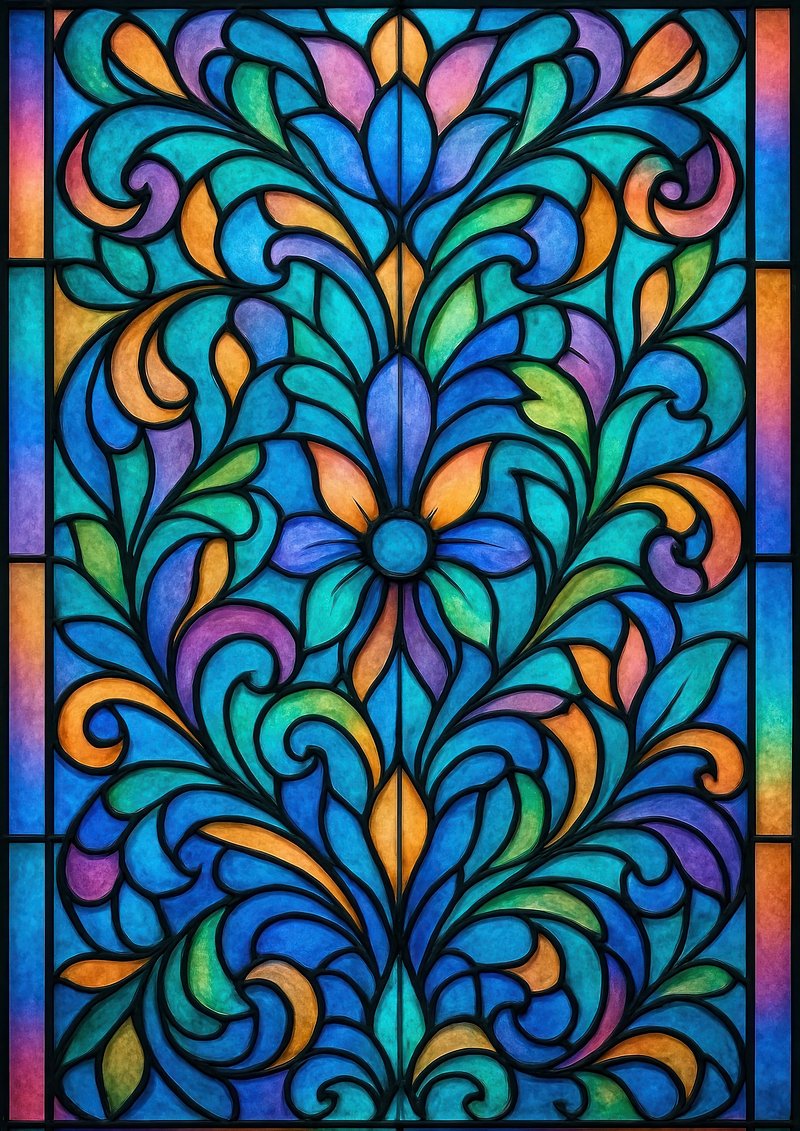 Vibrant floral stained glass design https://www.rawpixel.com/image/21295126/vibrant-floral-stained-glass-designView license