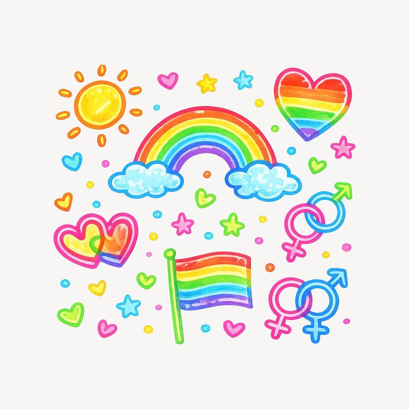 Colorful pride symbols illustration. https://www.rawpixel.com/image/25084383/colorful-pride-symbols-illustrationView license