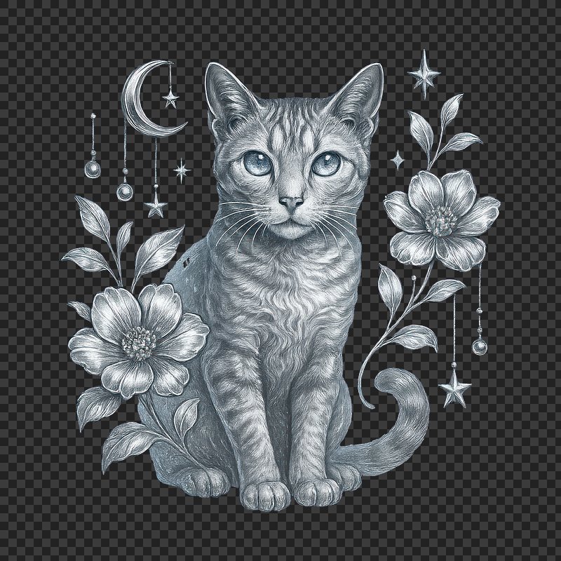 PNG Mystical cat with floral elements. https://www.rawpixel.com/image/23547051/png-mystical-cat-with-floral-elementsView license