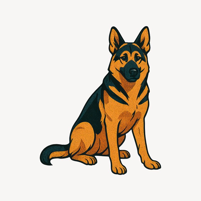 Illustrated German Shepherd dog sitting. https://www.rawpixel.com/image/24715966/illustrated-german-shepherd-dog-sittingView license