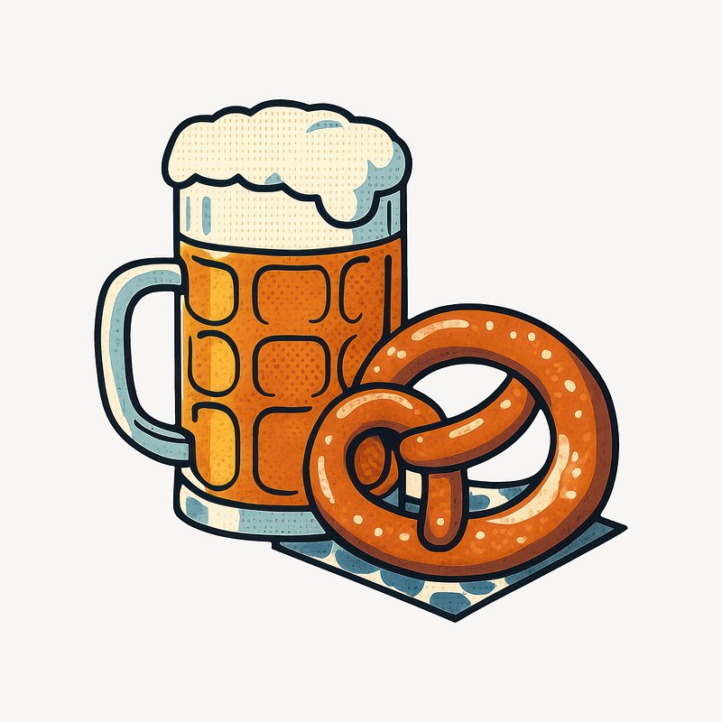 Beer mug and pretzel illustration. https://www.rawpixel.com/image/24714740/beer-mug-and-pretzel-illustrationView license