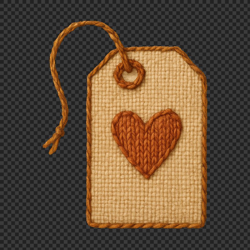 PNG Handcrafted heart-stitched tag illustration. https://www.rawpixel.com/image/24062833/png-handcrafted-heart-stitched-tag-illustrationView license