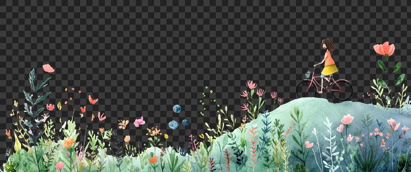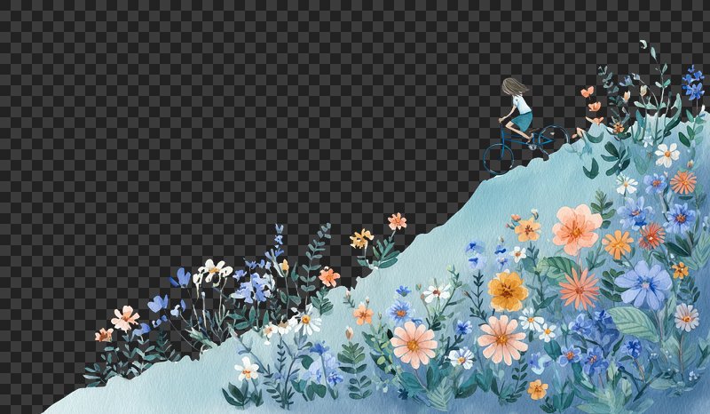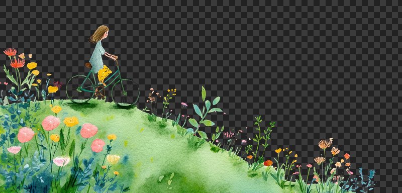 PNG Whimsical cycling through floral landscape. https://www.rawpixel.com/image/25251942/png-whimsical-cycling-through-floral-landscapeView license