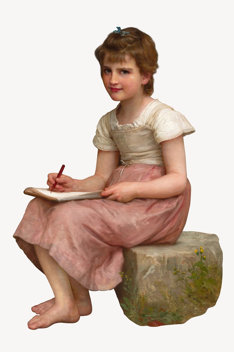 A Calling by William Adolphe Bouguereau vintage illustration isolated on white, psd. Remixed by rawpixel https://www.rawpixel.com/image/25013441/psd-image-png-paper-faceView license