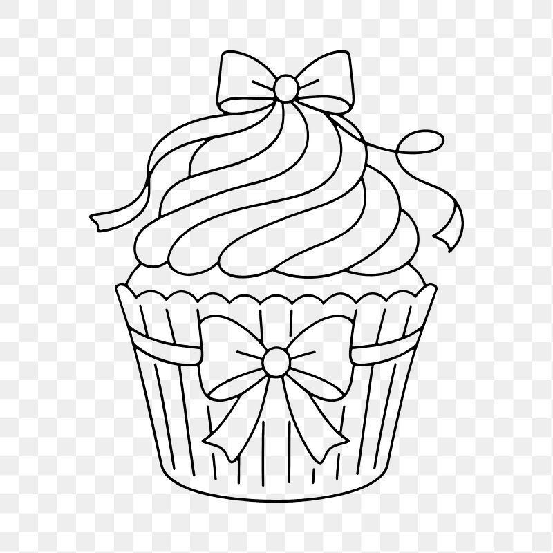 PNG Cupcake outline with decorative bows. https://www.rawpixel.com/image/24820304/png-cupcake-outline-with-decorative-bowsView license
