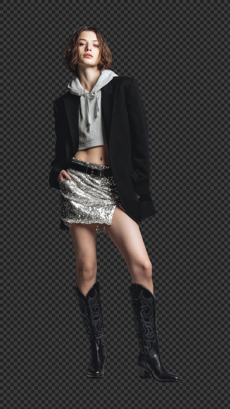 PNG A female fashion model skirt blazer sequin. https://www.rawpixel.com/image/18423325/png-female-fashion-model-skirt-blazer-sequinView license