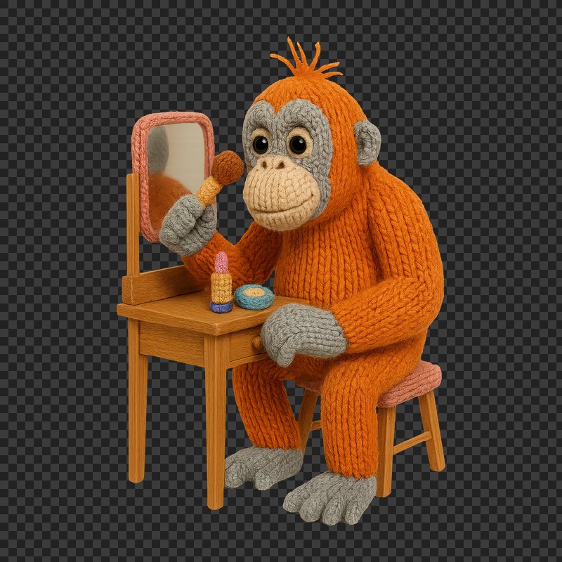 PNG Knitted orangutan applying makeup. https://www.rawpixel.com/image/24473857/png-knitted-orangutan-applying-makeupView license
