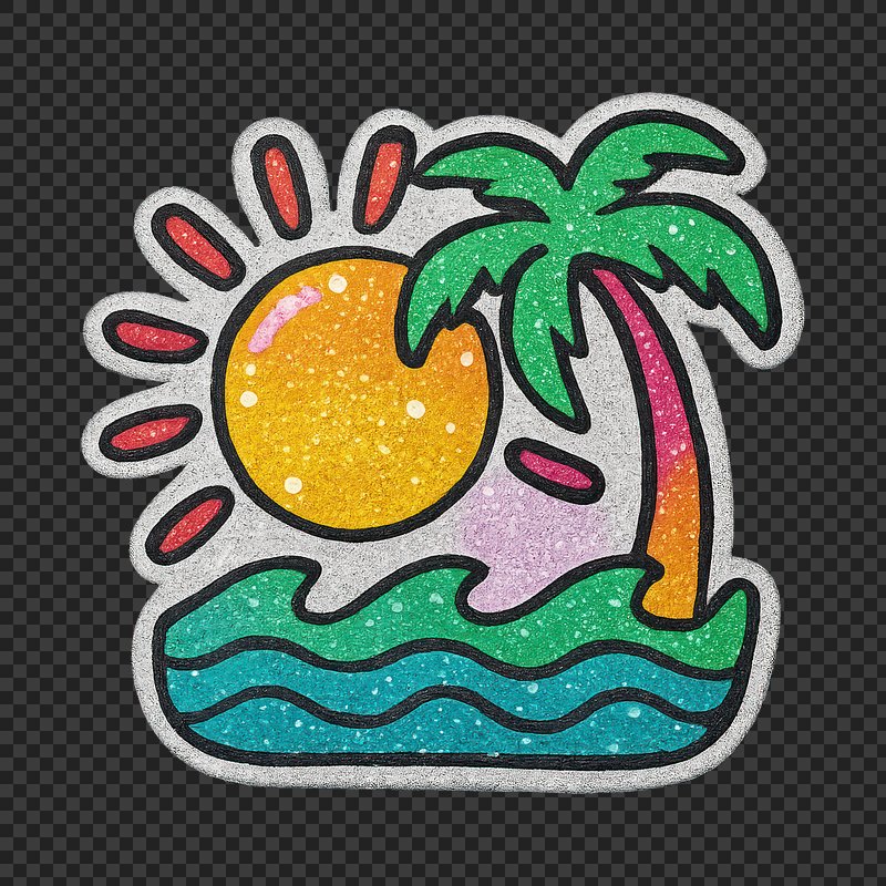 PNG Vibrant tropical beach scene sticker. https://www.rawpixel.com/image/24780333/png-vibrant-tropical-beach-scene-stickerView license