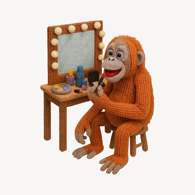 Knitted orangutan applying makeup. https://www.rawpixel.com/image/24656985/knitted-orangutan-applying-makeupView license