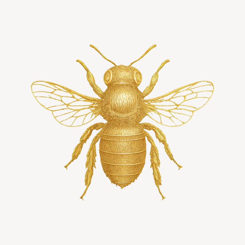 Golden bee illustration on white https://www.rawpixel.com/image/24575569/golden-bee-illustration-whiteView license