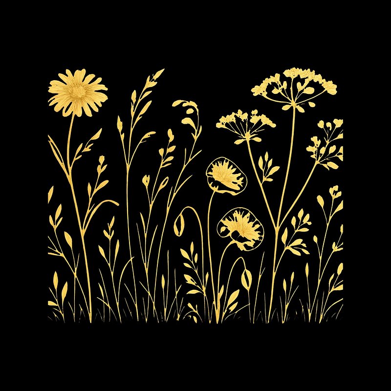 Golden floral silhouettes on black. https://www.rawpixel.com/image/24536437/golden-floral-silhouettes-blackView license