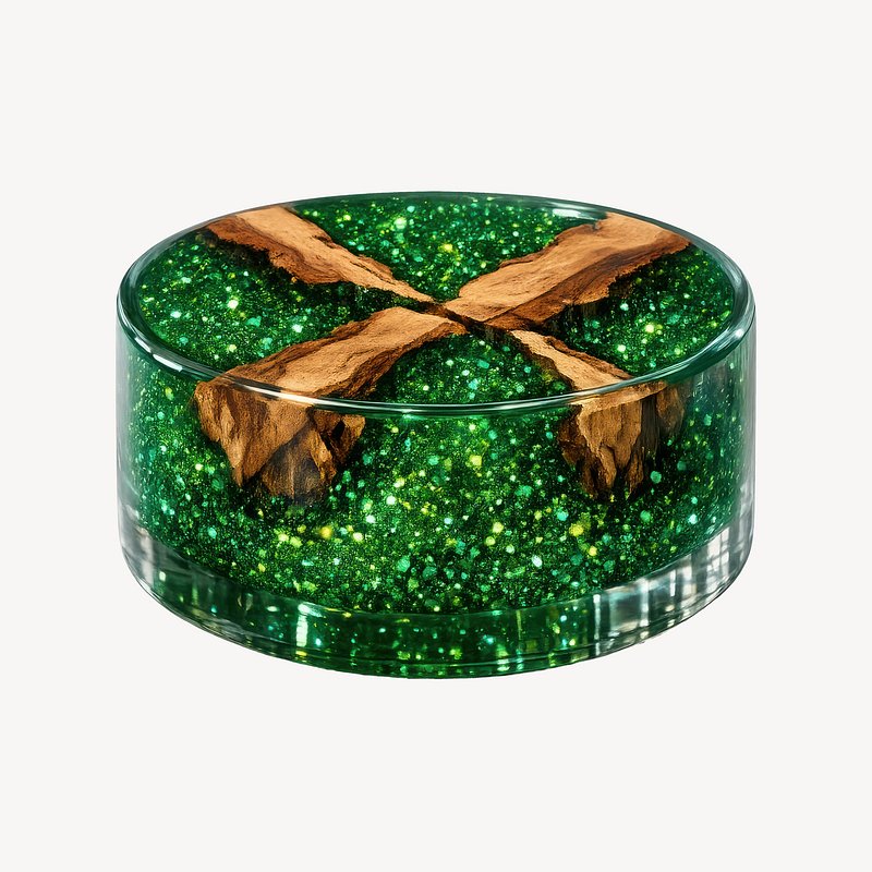 Glittery green resin coaster. https://www.rawpixel.com/image/25531680/glittery-green-resin-coasterView license