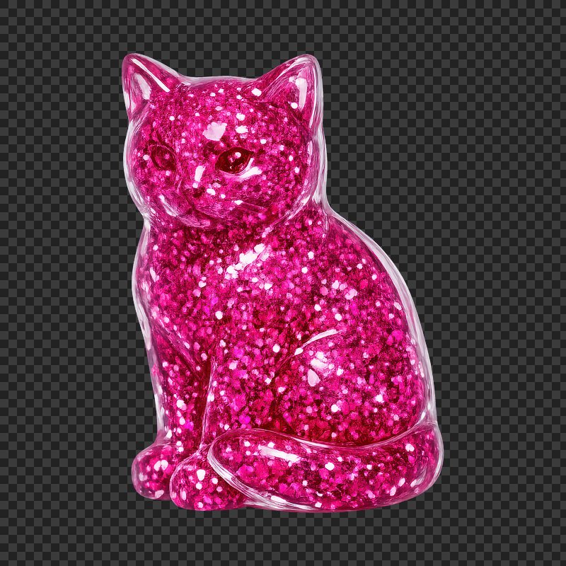 PNG Sparkling pink cat sculpture illustration. https://www.rawpixel.com/image/25280217/png-sparkling-pink-cat-sculpture-illustrationView license