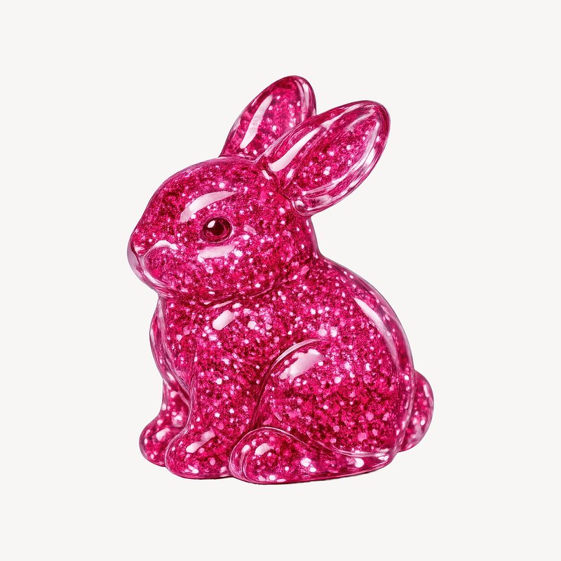 Sparkling pink glitter bunny sculpture. https://www.rawpixel.com/image/25308947/sparkling-pink-glitter-bunny-sculptureView license